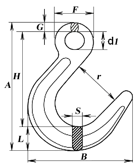 Крюк грузовой подъемный с расширенным зевом (литейный). Применяется для подъёма грузов с нестандартными проушинами, петлями.