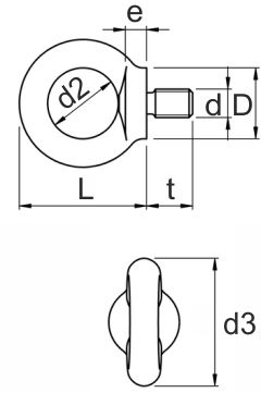 Рым-болт DIN 580 с кольцом и буртиком с полной метрической резьбой М10 изготовлен из стали и покрыт слоем цинка для защиты от коррозии. Имеет крупный, правый шаг резьбы и используется для поднятия тяжелых деталей и узлов машин, для буксировки транспортных средств, для крепления карабинов, канатов, тросов и прочих такелажных изделий. Применяется в судостроении, лесозаготовке, строительстве, грузоперевозках, грузоподъемном оборудовании, а также в рекламных агентствах.